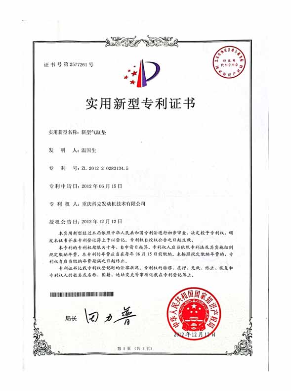 CN201220283134.5 New type of cylinder gasket