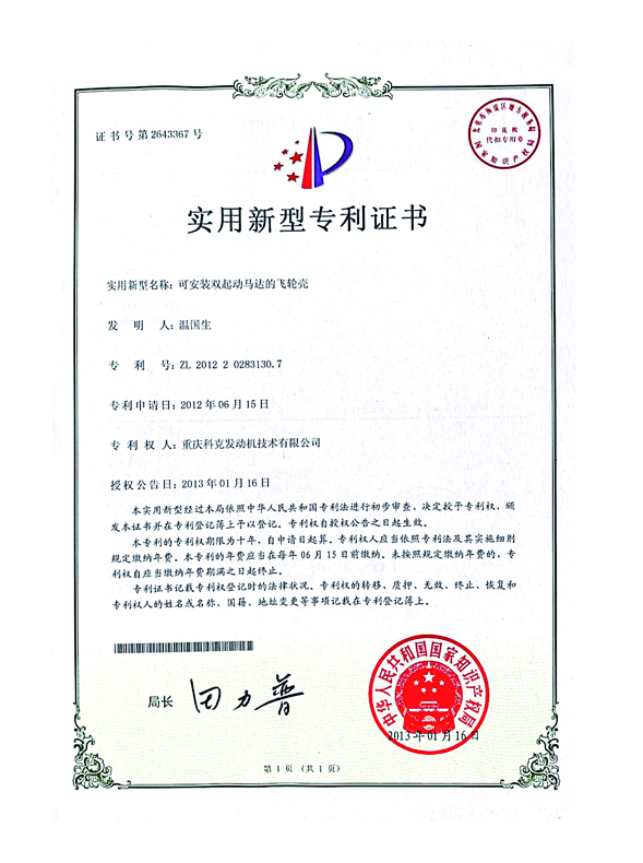 CN201220283130.7 Flywheel housing that can be mounted with dual starter motors