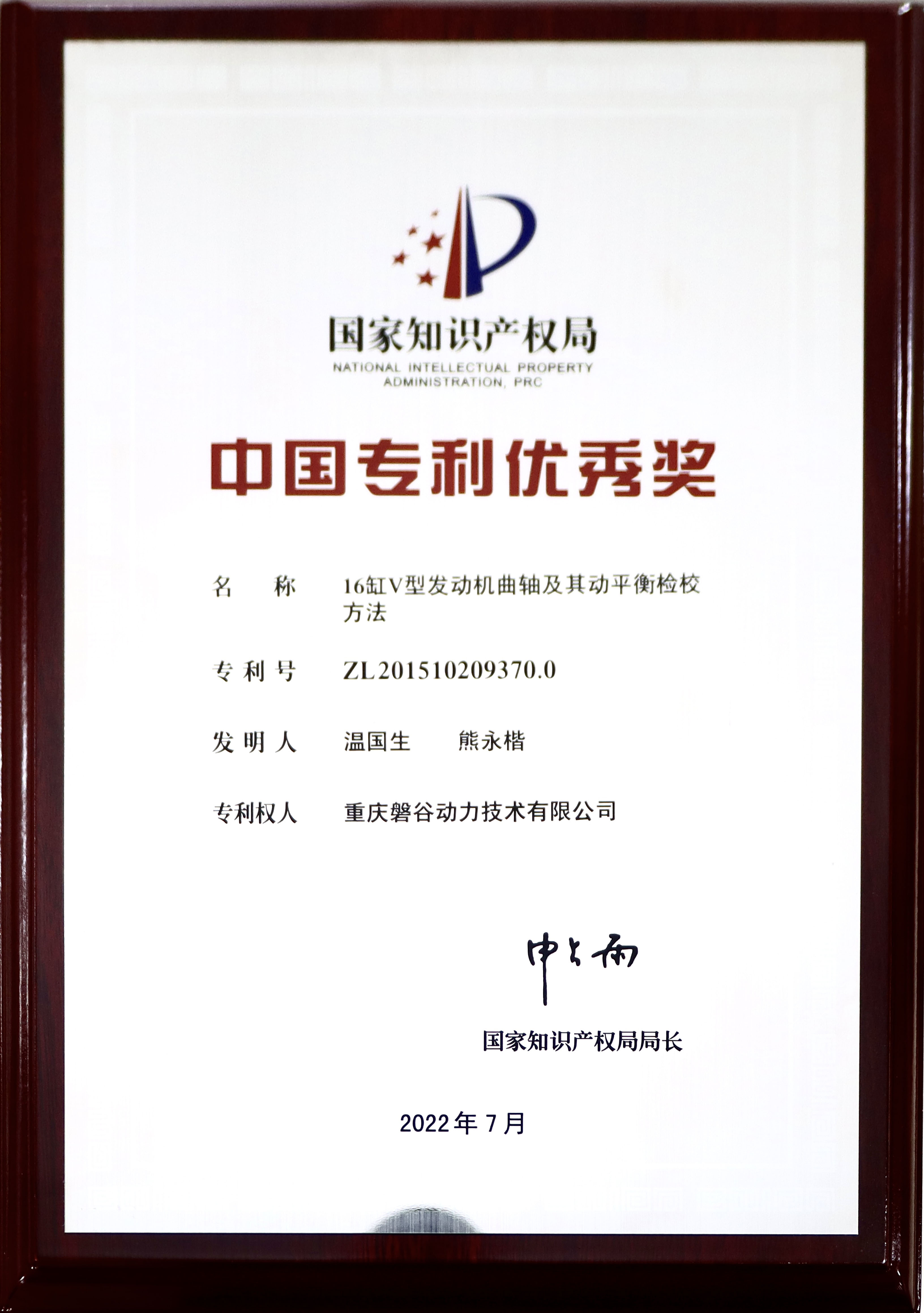 China Patent Excellence Award