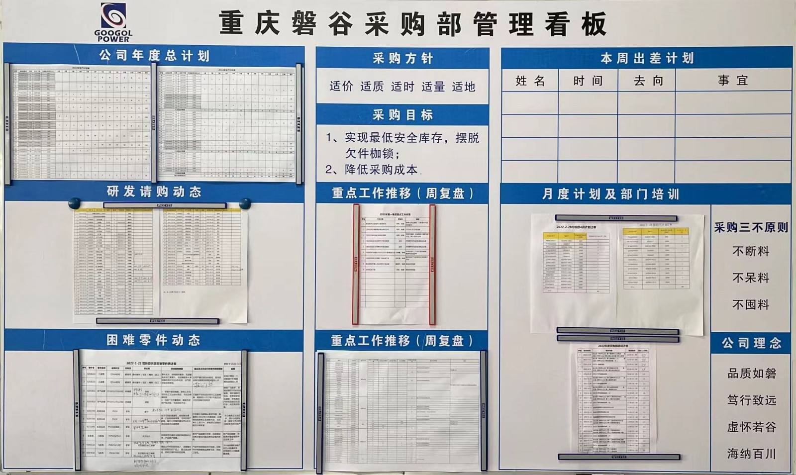▲观摩采购部年度工作上墙计划